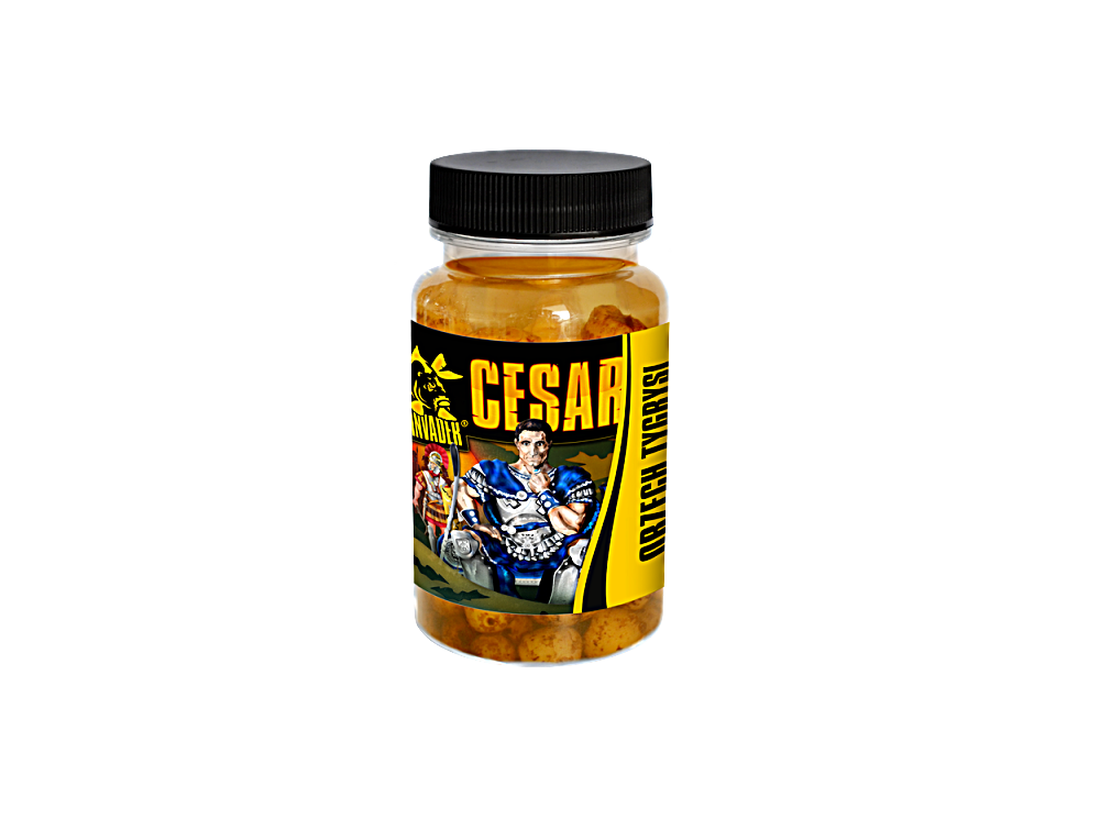 Seria Cezar to odważne połączenie Kałamarnicy z porzeczką. Połączenie tych dwóch światów i smaków: rybnego oraz owocowego, stanowi o unikatowości tej przynęty.