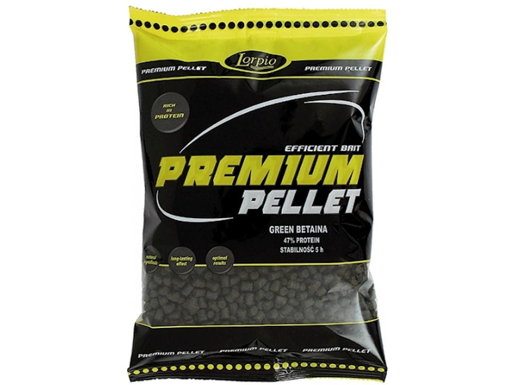 PREMIUM PELLET – smaczna, skuteczna i zdrowa przynęta oraz zanęta na wszystkie ryby karpiowate. Zawiera witaminy, rozpuszczalne proteiny, mączkę ryb morskich, mączkę skorupiaków, olej rybny oczyszczony i atraktory. Powoli uwalnia białko i aromaty, wabi ryby szybko i długo utrzymuje je w łowisku.