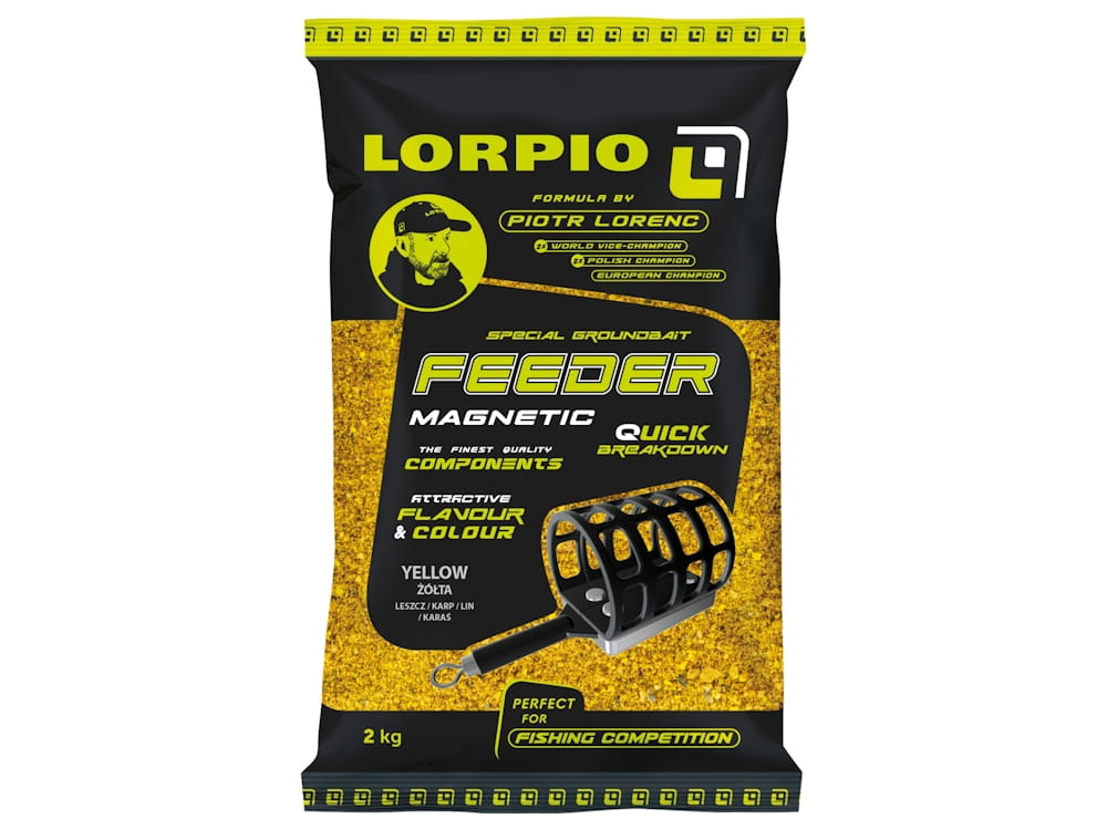 Lorpio Feeder Magnetic Yellow to zanęta o jasnym, żółtym kolorze, stworzona z myślą o łowieniu dużych ryb w koszyku zanętowym. Idealna do klasycznego feedera lub łowienia na spławik, skutecznie przyciąga leszcze, płocie, liny i karasie.