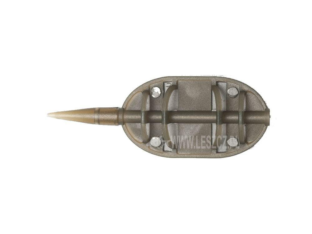 Koszyk do metody. Możemy go użyć zarówno samego, jak i również w komplecie ze specjalną foremką. Żyłka główna przechodzi przez środek koszyka, a następnie zakończona jest łącznikiem, do którego mocuje się przypon. W zależności od rodzaju użytego łącznika, koszyk ten może być zamontowany przelotowo, lub na stałe.