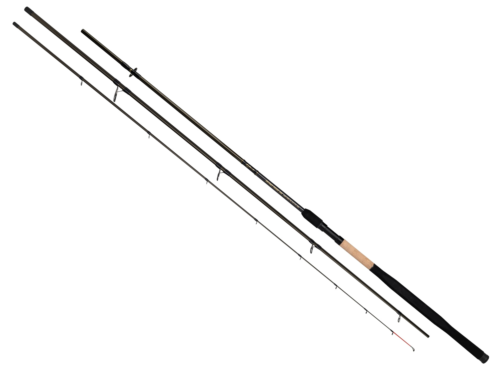 Długi dolnik wykonano z korka i EVA, co poprawia komfort trzymania i pomaga podczas zacięcia oraz holu. To idealny wybór dla wędkarzy, którzy szukają mocnego feedera do dalekich rzutów na rzekach i dużych zbiornikach.