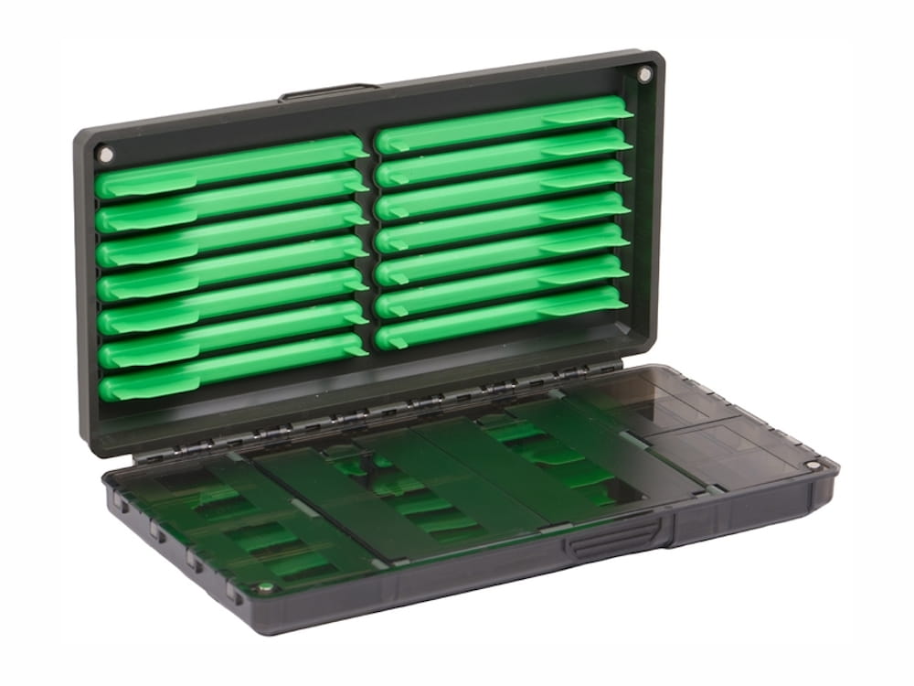 Magnetyczne pudełko wędkarskie JAXON przeznaczone do przechowywania przyponów oraz drobnych akcesoriów, pomagające utrzymać porządek w sprzęcie.