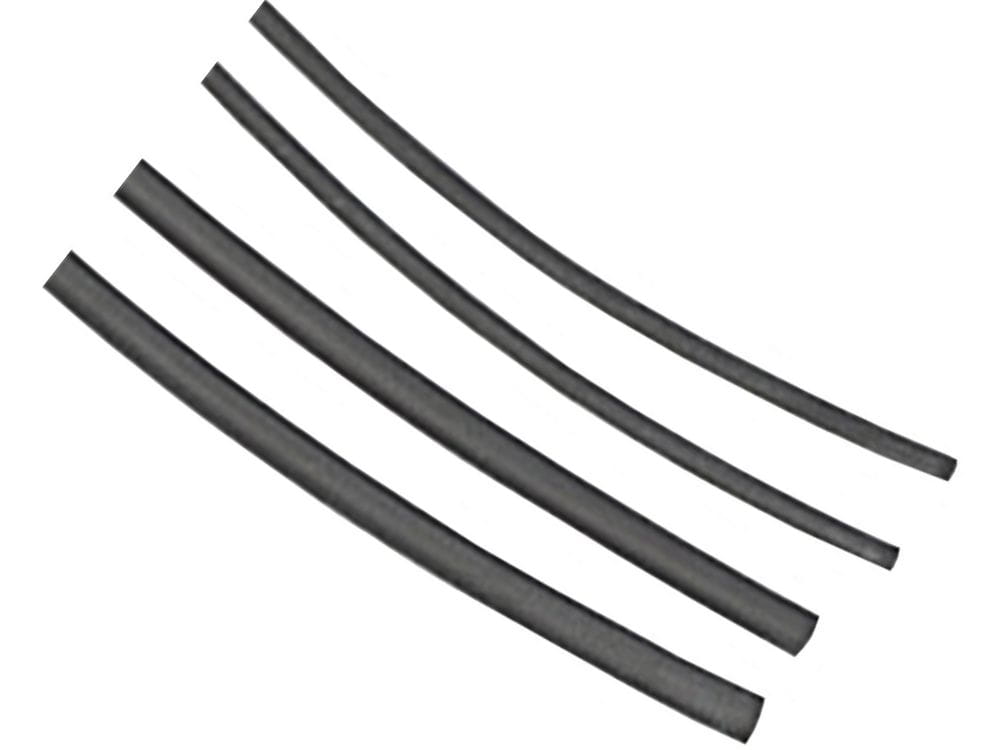 Czarne rurki termokurczliwe Stonfo o szerokości 1,6 mm przeznaczone do precyzyjnego wykańczania i zabezpieczania elementów zestawu wędkarskiego.