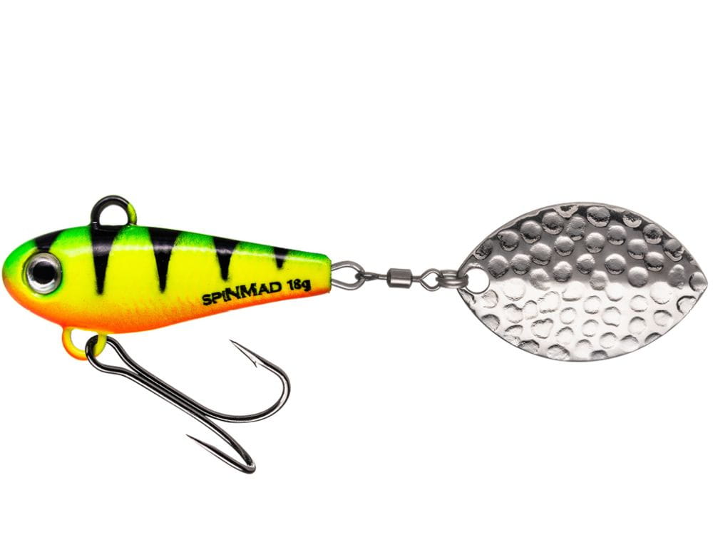 Większa masa pozwala przynęcie zejść głębiej, dzięki czemu dużo łatwiej obławia się rzeczne rynny z wolnym uciągiem, w których przebywają drapieżniki. JAG sprawdza się także w płytszych odcinkach rzek z silniejszym nurtem. Łowiąc w rzekach warto prowadzić przynętę wachlarzem, posyłając ją prostopadle do brzegu i kontrolując jej pracę po łuku. Podczas prowadzenia warto podkreślać atrakcyjność przynęty poprzez wprowadzenie elementów jiggowania lub przytrzymywanie jej w interesujących miejscach. Model JAG generuje największe refleksy świetlne z całej oferty wirujących ogonków SpinMad. Tak więc, jeśli jesteś częstym gościem nad dużą nizinną rzeką, ta przynęta została stworzona dla Ciebie!