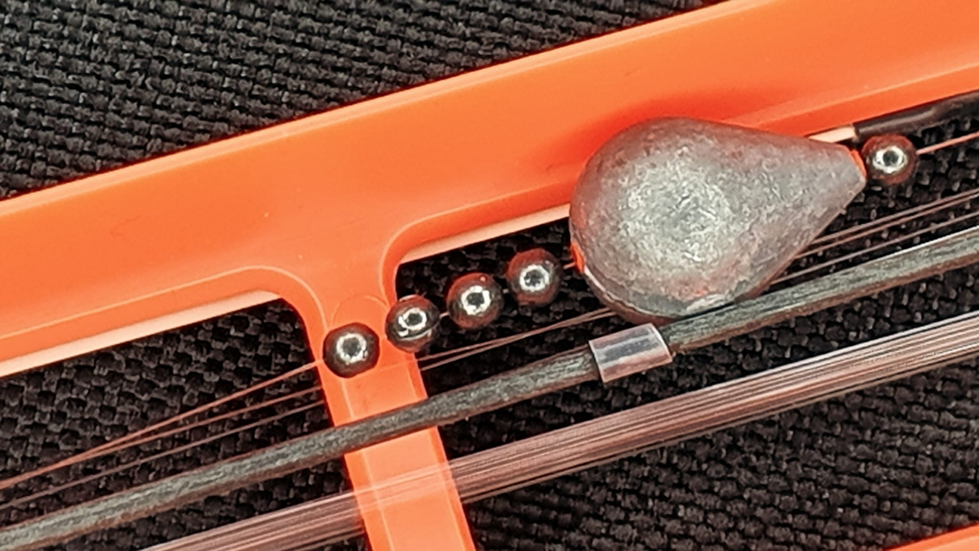 Obciążenie do bolonki nie powinno być skomplikowane, ale musi stopniować rybie opór przy braniu. Zablokowana śrucinami oliwka, a poniżej niej dwie śruciny, dość duże, numer 4, w odległości 22cm jedna od drugiej. Poniżej ostatniej śruciny krętlik, do którego przymocowany jest 20cm przypon i mały, ale dość mocny haczyk, Owner 50340 o rozmiarze 14 nadaje się idealnie.Po zarzuceniu, 5-10cm przyponu powinno spoczywać na dnie.