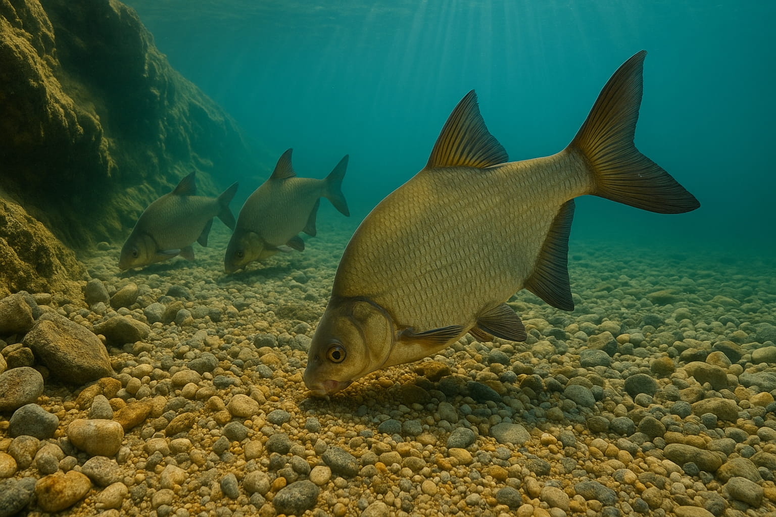 Nie wszystkie jednak ryby zimują w ten sposób. Leszcze bardzo często pozostają w rzece, zajmując stanowiska pomiędzy główkami, gdzie woda jest dużo spokojniejsza niż w nurcie, ale cały czas nanosi różne smakołyki, które umożliwiają zimowe żerowanie.